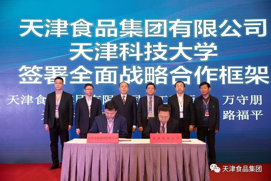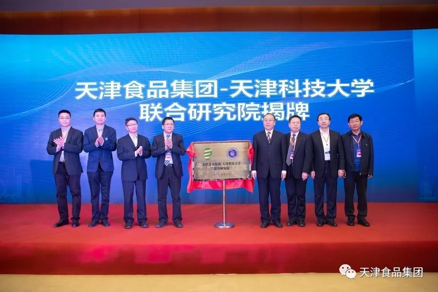 簽約儀式結(jié)束后,張勇和韓金玉共同為“天津食品集團-天津科技大學聯(lián)合研究院”揭牌,標志著雙方聯(lián)合建設(shè)以開放式研究院為代表的科技創(chuàng)新載體正式拉開序幕。