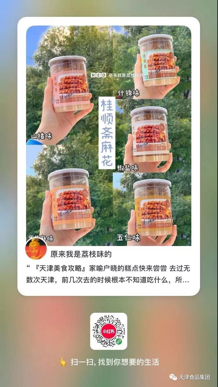 為適應當前互聯(lián)網(wǎng)銷售模式,迎合年輕人追逐的網(wǎng)紅效應, 2019年“雙11”前夕,集團宣傳部聯(lián)合愛天津(信投新媒體),通過生活方式分享平臺——小紅書,分別為桂順齋、王朝、迎賓、利民、光榮等5個品牌的主打產(chǎn)品進行內(nèi)容營銷,借助網(wǎng)絡美食達人自身流量,給各品牌線上渠道進行流量導入,取得了良好的效果。