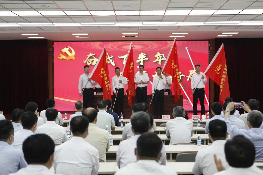 會議開始,萬守朋首先帶領(lǐng)全體參會黨員重溫入黨誓詞。會議通報(bào)了集團(tuán)黨史學(xué)習(xí)教育階段成果,部署了近期重點(diǎn)工作,表彰了集團(tuán)系統(tǒng)“兩優(yōu)一先”個(gè)人和集體,并啟動(dòng)“奮戰(zhàn)下半年,確保開好局”活動(dòng)。集團(tuán)領(lǐng)導(dǎo)為獲獎(jiǎng)代表頒獎(jiǎng),為黨員突擊隊(duì)代表授旗。