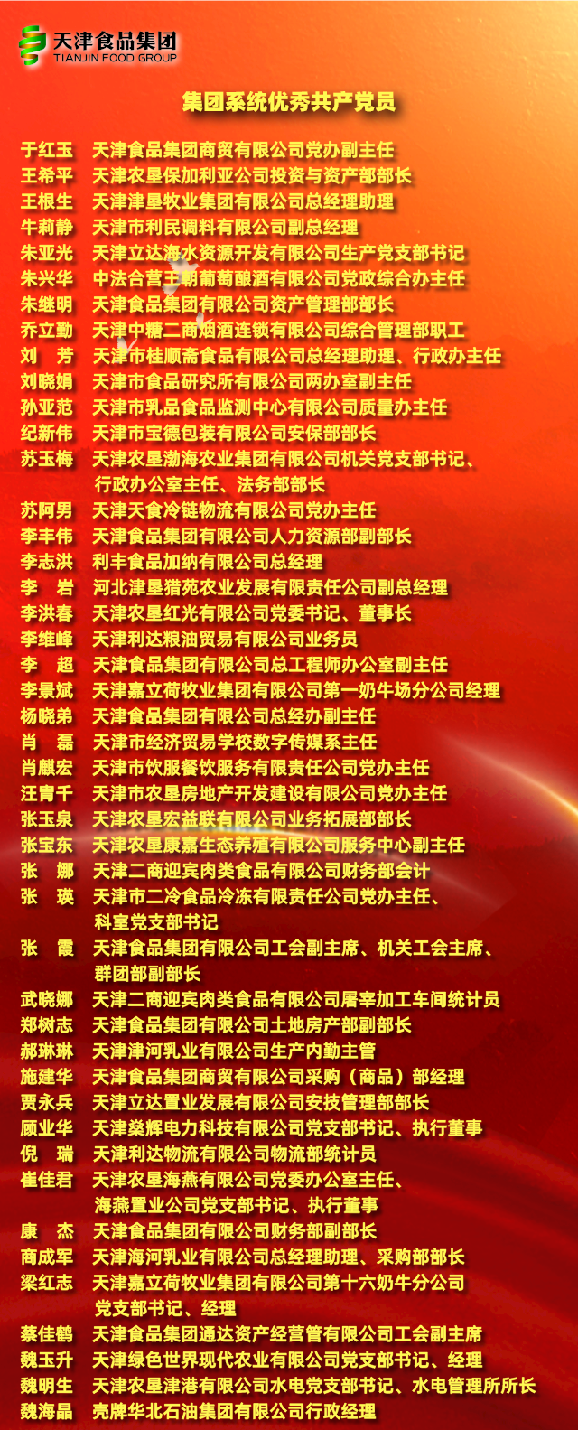 6月29日上午,天津食品集團(tuán)召開“兩優(yōu)一先”表彰會暨黨史學(xué)習(xí)教育專題黨課。熱烈慶祝中國共產(chǎn)黨成立100周年,總結(jié)黨史學(xué)習(xí)教育階段工作,部署下階段工作重點(diǎn),表彰近一年來涌現(xiàn)出的先進(jìn)基層黨組織、優(yōu)秀共產(chǎn)黨員和黨務(wù)工作者,啟動(dòng)“奮戰(zhàn)下半年,確保開好局”活動(dòng),并由集團(tuán)黨委書記、董事長萬守朋講授黨史學(xué)習(xí)教育專題黨課。