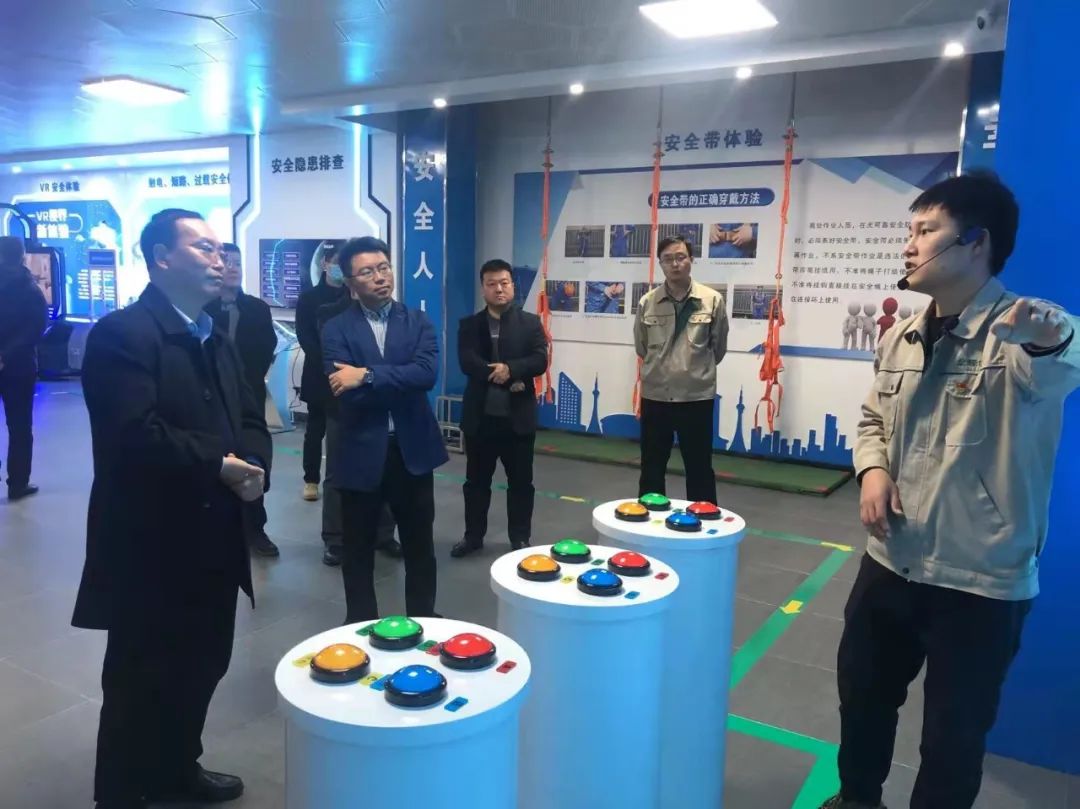 儀式結束后,首期培訓班學員進入多媒體宣教室進行消防安全知識學習。與會領導對安全培訓體驗中心各模塊的組成、體驗目的、體驗效果等逐一進行了了解,并對VR安全體驗、電力安全體驗等模塊進行了體驗,對大數(shù)據(jù)中心展現(xiàn)的智慧工地、電站智能運維系統(tǒng)等一系列模塊表示高度贊揚,并現(xiàn)場通過指揮調(diào)度平臺對房地產(chǎn)公司下屬單位進行了指揮連線。