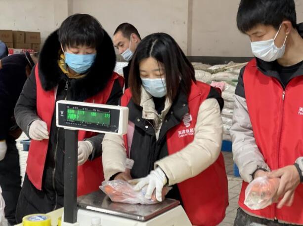 商貿(mào)公司嚴(yán)格執(zhí)行生產(chǎn)、物流、商品全鏈條的防疫消殺流程,保證人、車(chē)、物的防疫安全。特殊時(shí)期,居民為減少外出次數(shù),一次性采購(gòu)量較大,為此,公司加大產(chǎn)品供應(yīng)力度,凌晨5點(diǎn)滿載蔬菜的貨車(chē)就陸續(xù)抵達(dá)南開(kāi)區(qū)分倉(cāng),7點(diǎn)公司員工到崗對(duì)蔬菜進(jìn)行分揀、打包、稱(chēng)重,9點(diǎn)新鮮、充足的蔬菜準(zhǔn)時(shí)到達(dá)各保供點(diǎn)位?;A(chǔ)民生食品一應(yīng)俱全,保證各點(diǎn)位供應(yīng)不脫銷(xiāo)、不斷貨,便民、貼心的服務(wù)得到了周?chē)用竦囊恢潞迷u(píng)。“食品集團(tuán)的保供點(diǎn)位解決了我們?nèi)济贾?,我們這小區(qū)老年人多,給我們帶來(lái)了便捷,小伙子們不怕麻煩,耐心為我們服務(wù),讓我們心里很踏實(shí)。”居民李大爺拎著剛買(mǎi)完的新鮮蔬菜安心的說(shuō)道。