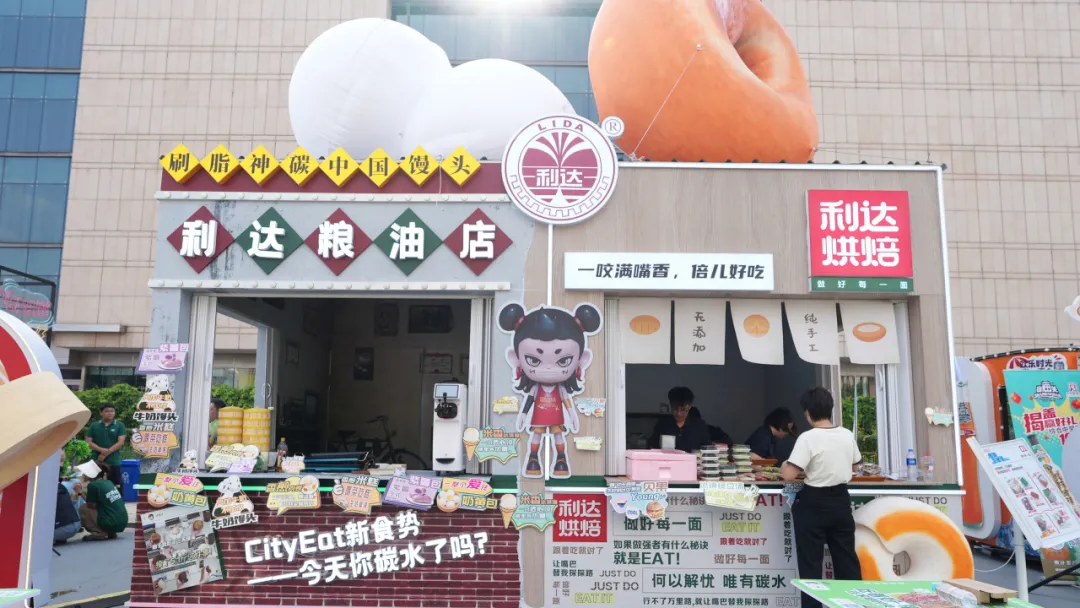 展區(qū)主要展示利達主食與利達烘焙兩個系列產(chǎn)品,結(jié)合年輕主題,搭建了以“饅頭-中國刷脂神器”為主題的互動打卡點,設(shè)立打卡贈送“漆畫扇”活動,更好地向年輕群體宣傳了利達品牌,打破消費者對利達的固有認(rèn)知,和年輕的消費群體展開友好的交流,為消費者提供多“young”性的優(yōu)質(zhì)碳水選擇。此外,結(jié)合夜市消費場景,新研發(fā)的利達花樣主食土豆、紫薯、香煎肉花卷、利達鍋巴菜貝果等,一經(jīng)推出,立即成為市集的網(wǎng)紅產(chǎn)品,深受消費者喜愛。