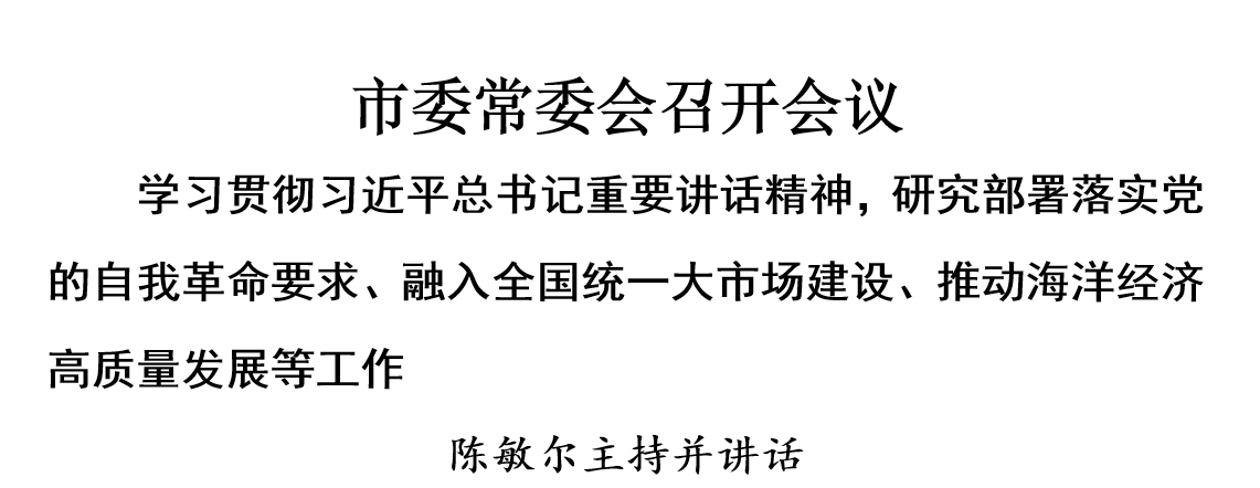 會(huì)議強(qiáng)調(diào),要認(rèn)真領(lǐng)會(huì)習(xí)近平總書記在中央財(cái)經(jīng)委員會(huì)第六次會(huì)議上的重要講話精神,與深學(xué)深用習(xí)近平經(jīng)濟(jì)思想結(jié)合起來(lái),牢牢把握縱深推進(jìn)全國(guó)統(tǒng)一大市場(chǎng)建設(shè)“五統(tǒng)一、一開放”的基本要求,自覺在大局下想問題、做工作,持續(xù)深化要素市場(chǎng)化改革,推進(jìn)市場(chǎng)制度統(tǒng)一、設(shè)施聯(lián)通、監(jiān)管一致,著力推動(dòng)內(nèi)外貿(mào)一體化發(fā)展,積極參與全國(guó)統(tǒng)一大市場(chǎng)建設(shè)。要牢牢把握推動(dòng)海洋經(jīng)濟(jì)高質(zhì)量發(fā)展的重要要求,提升向海開放、向海發(fā)展能力,科學(xué)編制我市海洋經(jīng)濟(jì)發(fā)展“十五五”規(guī)劃,爭(zhēng)取更多海洋戰(zhàn)略科技力量布局天津,充分發(fā)揮天津港的優(yōu)勢(shì)和作用,大力發(fā)展港航服務(wù)業(yè),做大做強(qiáng)臨港產(chǎn)業(yè)、適港產(chǎn)業(yè),加強(qiáng)海洋生態(tài)保護(hù)修復(fù),深入推進(jìn)港產(chǎn)城融合發(fā)展,打造我國(guó)北方地區(qū)聯(lián)通國(guó)內(nèi)國(guó)際雙循環(huán)的重要戰(zhàn)略支點(diǎn)。