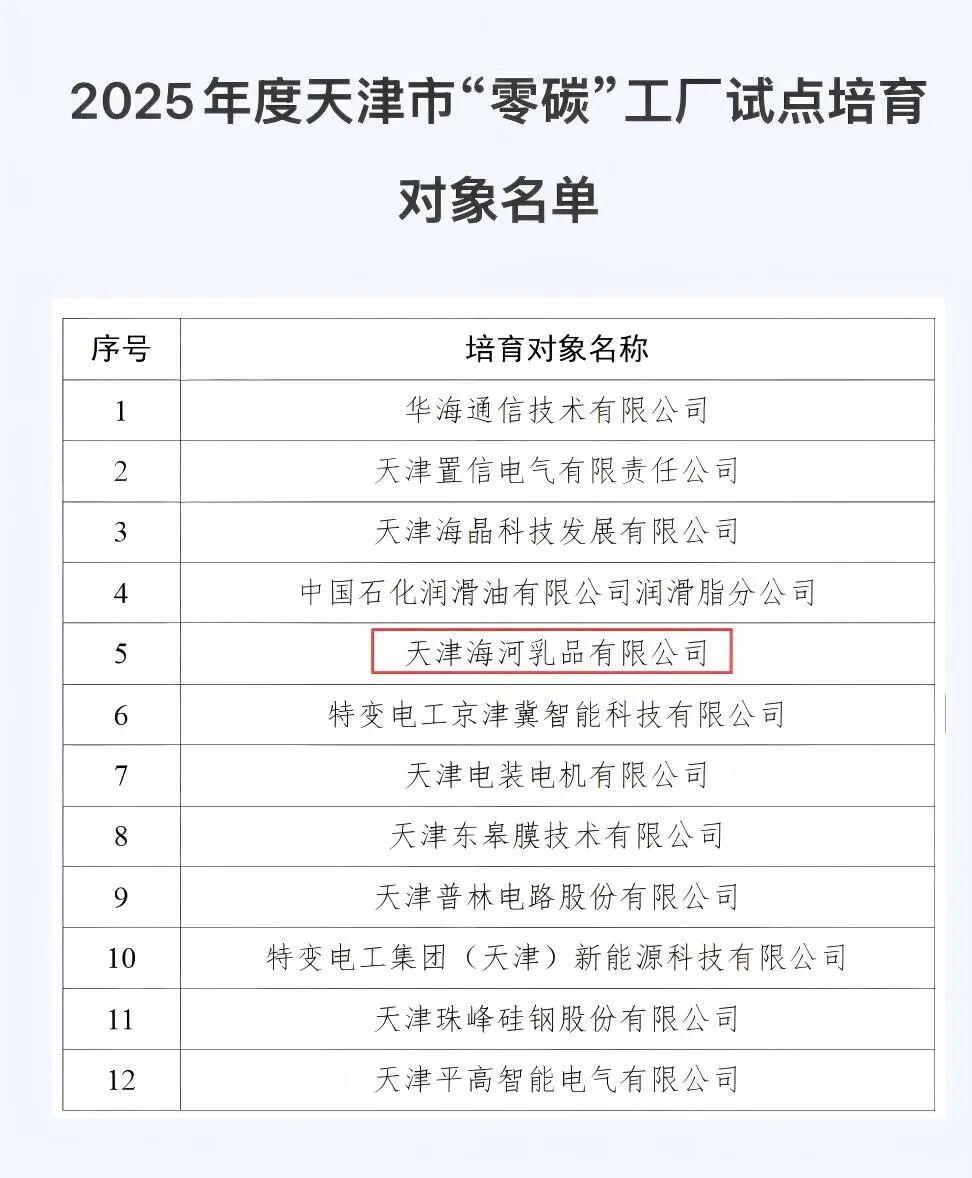 近日,天津市工業(yè)和信息化局公布2025年度“零碳”工廠試點(diǎn)培育對象名單。海河乳品公司憑借在綠色生產(chǎn)、能源結(jié)構(gòu)優(yōu)化及低碳創(chuàng)新領(lǐng)域的卓越實(shí)踐與前瞻布局,經(jīng)過多輪嚴(yán)格篩選,從眾多申報企業(yè)中脫穎而出,成功入選“零碳”工廠試點(diǎn)培育對象名單,彰顯了中華老字號乳企在綠色轉(zhuǎn)型道路上的先行姿態(tài)。