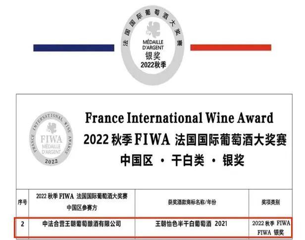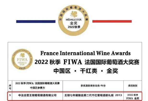 日前,2022秋季FIWA法國國際葡萄酒大獎賽中國區(qū)獲獎酒款名單發(fā)布,王朝旗下王朝七年藏釀品第二代干紅葡萄酒獻(xiàn)禮版(2013)、王朝怡色半干白葡萄酒(2021)兩款核心產(chǎn)品分別斬獲金、銀兩項(xiàng)大獎。獎項(xiàng)的獲得不僅代表國際上對王朝產(chǎn)品品質(zhì)的認(rèn)可,更提振了公司士氣,堅(jiān)定了發(fā)展信心。