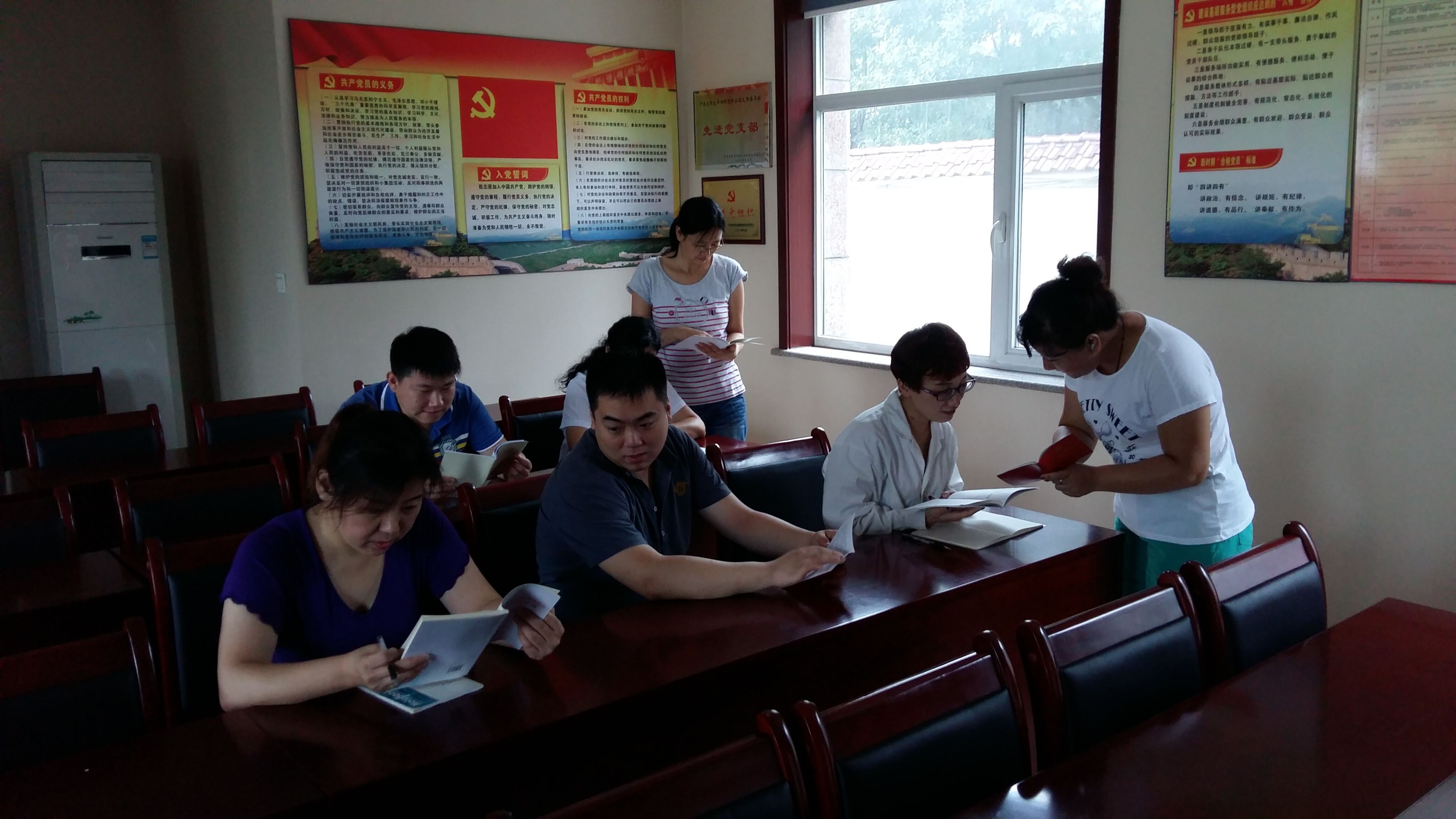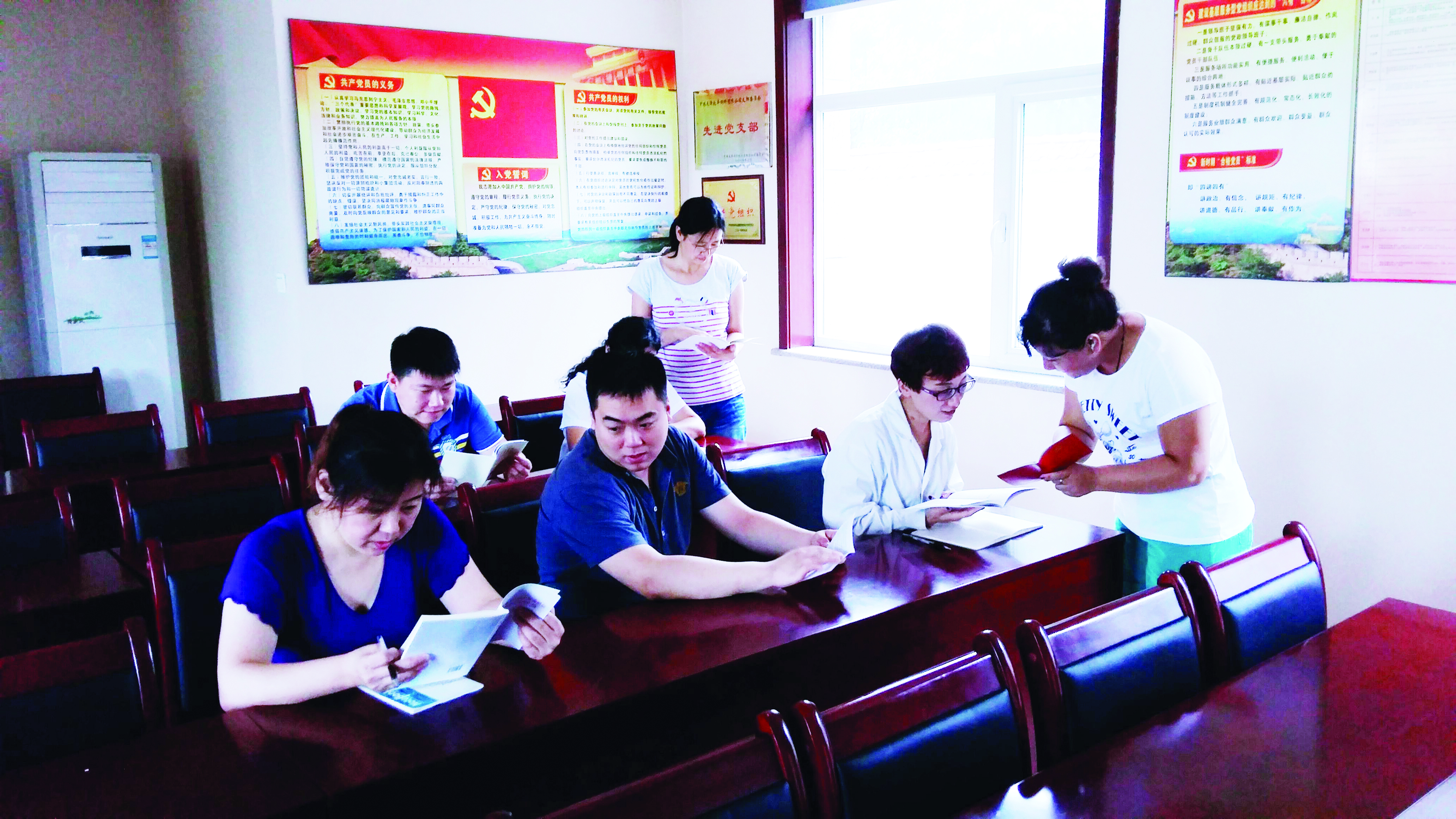 每天中午,在牧豐支部的黨員活動室內(nèi)總能看到不少黨員和群眾,大家利用午休時間來活動室坐一坐,看看書、讀讀報,有的自學(xué),有的小范圍進(jìn)行交流,大家會針對時事各抒己見,當(dāng)討論到工作問題,來自不同部門的黨員更是主動參與,從不同的角度提出建議。通過交流,既能提高認(rèn)識又能解決一些工作問題,在這里既能學(xué)習(xí)又不耽誤工作,這是牧豐支部黨員活動的自由天地。